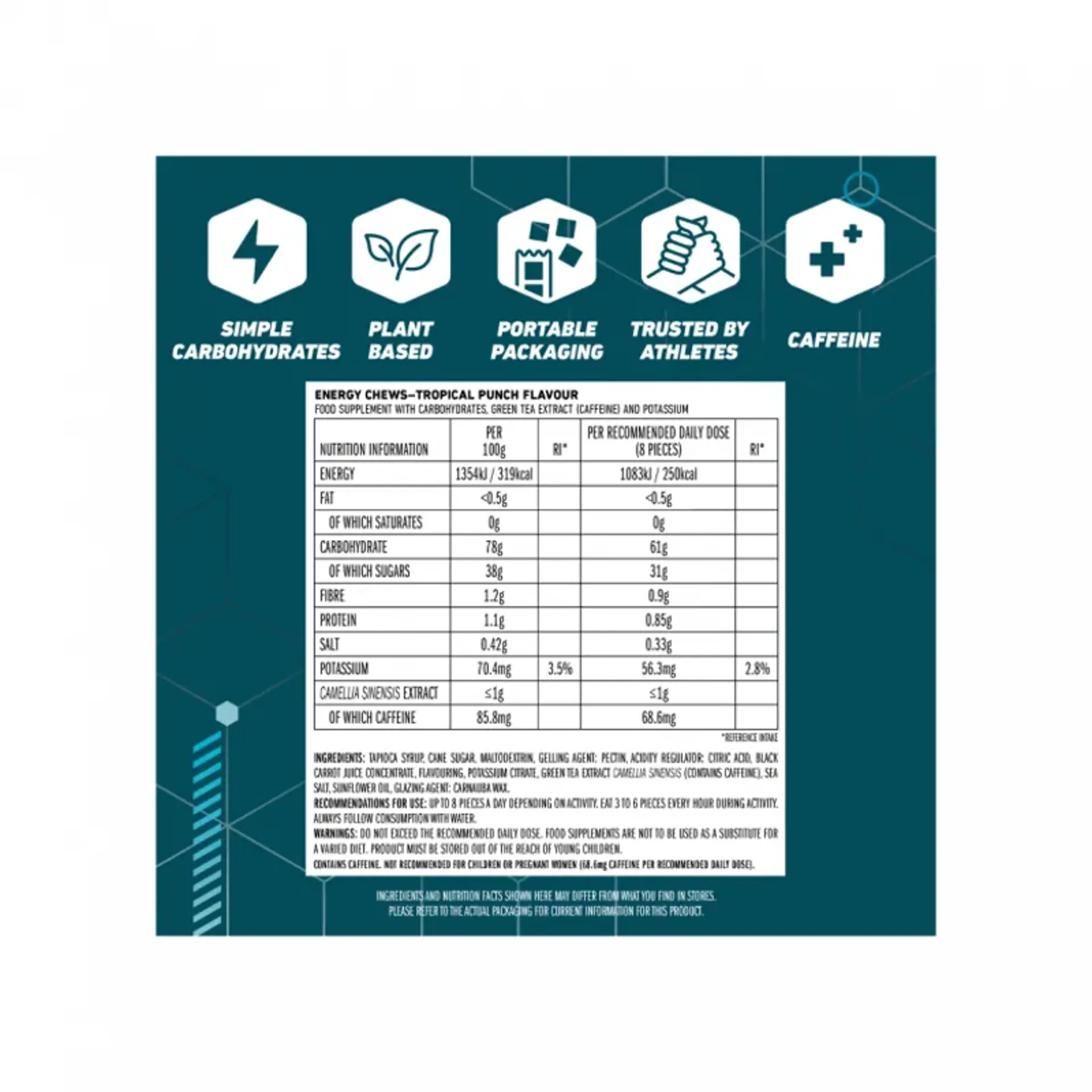 Clif bloksâ energy* chews are an easy-to-chew source of quickly absorbed carbohydrates that deliver glucose and fructose for fast fuel to working muscles [or for athletes during activity]
