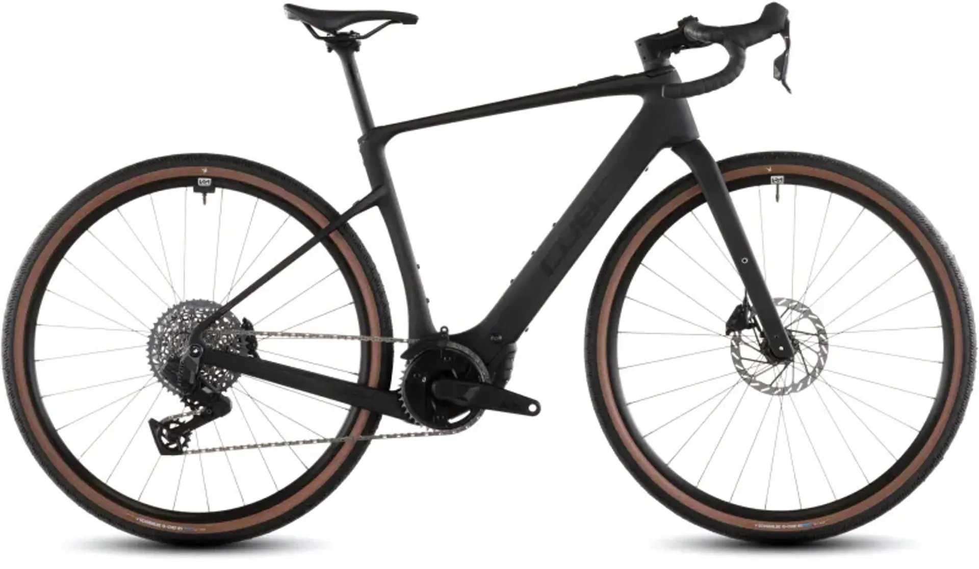 Here it is: the bike that effortlessly blends road bike refinement with gravel ruggedness. The Nuroad Hybrid C:62 EXC's Sram Rival XPLR AXS 1x13 gears deliver a wide range of closely spaced ratios with electronic precision, for perfect cadence in any situation. Bosch's light SX drive and 400Wh battery combination gives up to 60Nm of assistance, and Cube pre-installed X-Connect so it's easy to add a compatible ACID front light. The elegantly sculpted C:62® carbon frame and fork have attachment points for mudguards and carriers, with more than enough clearance for the Schwalbe 45mm G-One RS Pro tyres that grace the Newmen Performance Gravel 25 wheelset. And strong, progressive Sram Rival AXS hydraulic disc brakes have the power to ensure you're always in full control, whatever the weather or ground conditions. It's the complete package.