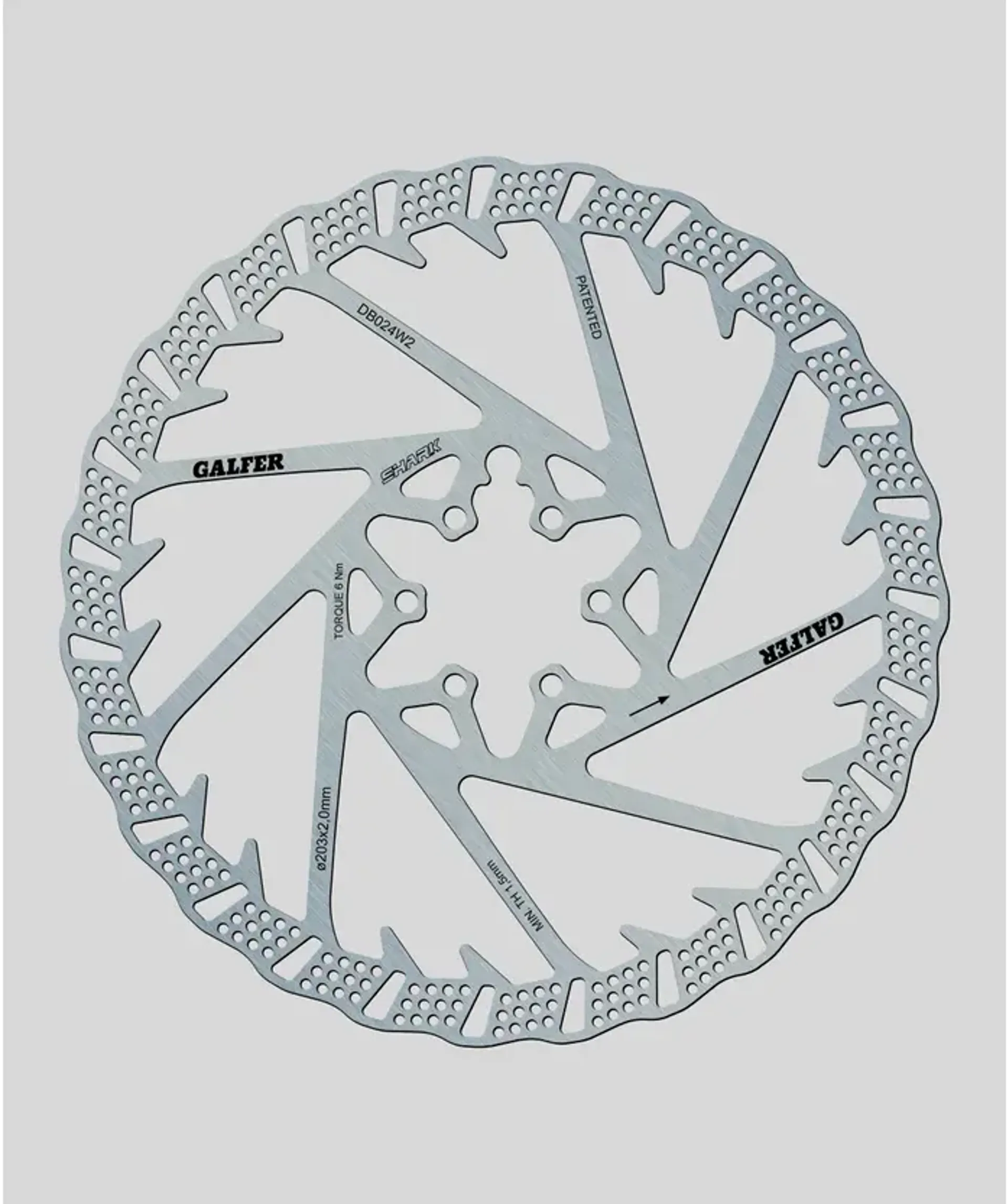 The Galfer Shark Disc Rotor – 6 Bolt is the result of extensive R&D and World Cup-level testing, designed to offer next-level braking performance, heat management, and control. Featuring an innovative finned design inspired by shark anatomy, this rotor maximises airflow and cooling while providing class-leading modulation and bite. With increased thickness and surface area, it's ideal for enduro, downhill, and e-MTB riders who push their brakes to the limit and need confident, fade-free stopping power every time.